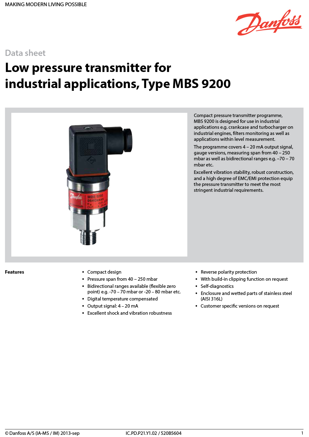 mbs 1900, 空氣與水應(yīng)用的壓力變送器