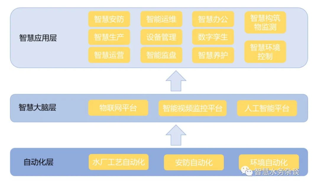 智慧水廠的建設(shè)應(yīng)從底層的基礎(chǔ)硬件出發(fā),向上逐步構(gòu)建數(shù)據(jù)處理的智慧大腦,最后通過多個智慧化應(yīng)用打造一個完善智慧化水廠。
