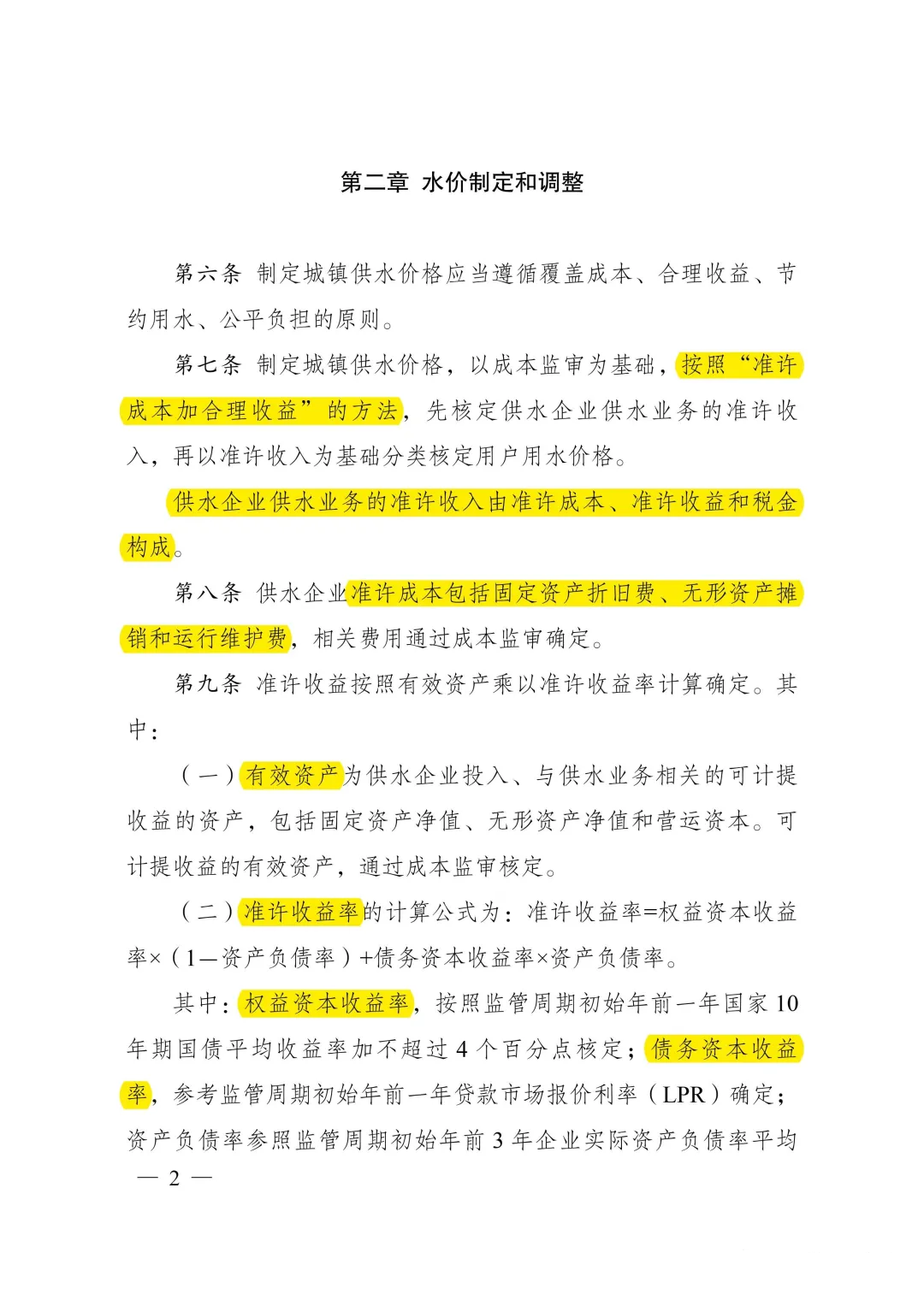 三是建立了參考市場利率合理確定供水收益率的機(jī)制。明確供水企業(yè)準(zhǔn)許收益率根據(jù)權(quán)益資本收益率、債務(wù)資本收益率確定,權(quán)益資本收益率按照10年期國債收益率加不超過4個百分點(diǎn)核定,債務(wù)資本收益率按照貸款市場報(bào)價利率確定,有利于吸引社會資本進(jìn)入,促進(jìn)供水行業(yè)健康持續(xù)發(fā)展。