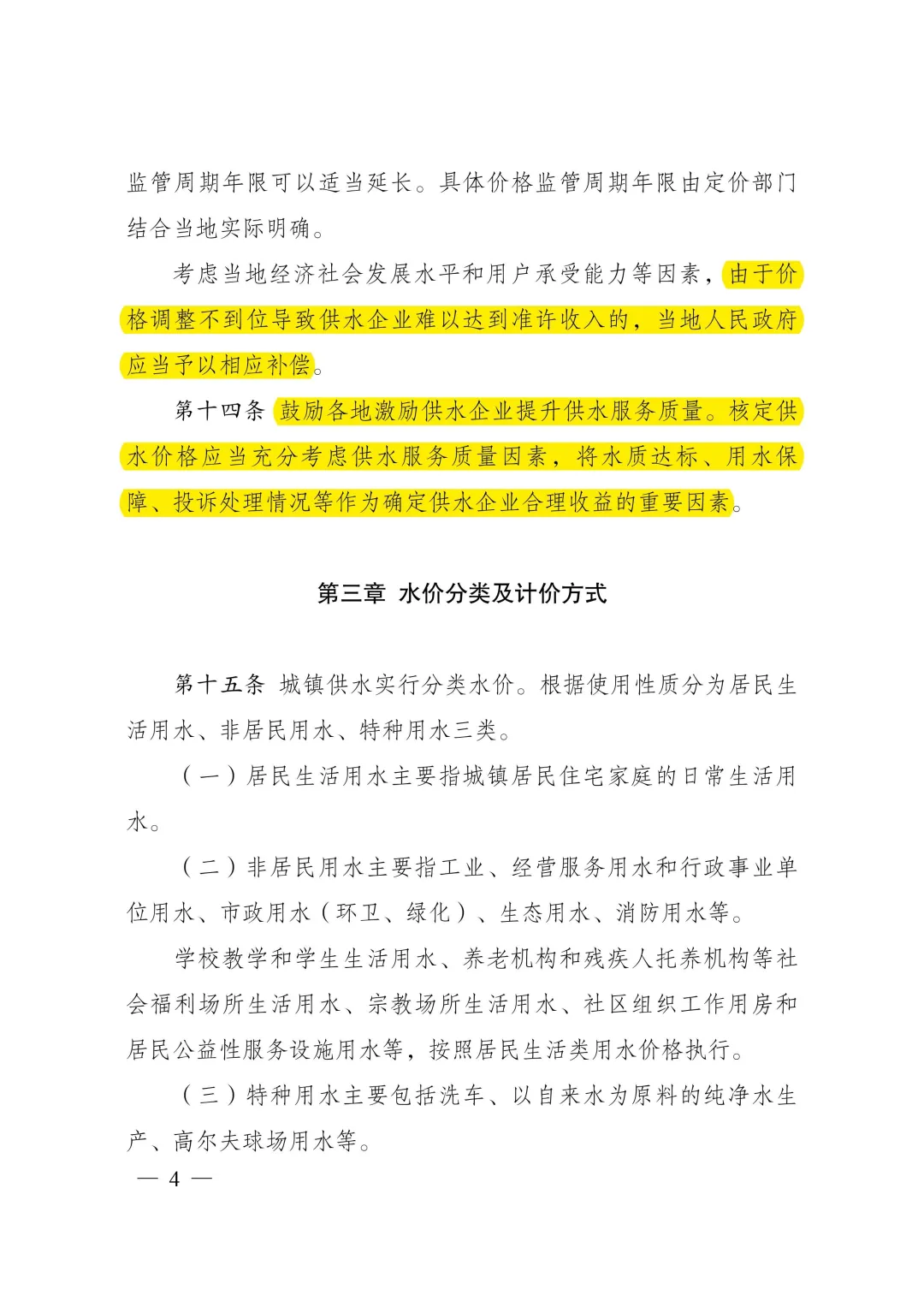 四是建立了供水價格定期校核機(jī)制和補(bǔ)償機(jī)制。明確城鎮(zhèn)供水價格監(jiān)管周期原則上為3年,建立供水價格與原水價格等上下游聯(lián)動機(jī)制的,監(jiān)管周期年限可以適當(dāng)延長??紤]當(dāng)?shù)亟?jīng)濟(jì)社會發(fā)展水平和用戶承受能力等因素,由于價格調(diào)整不到位導(dǎo)致供水企業(yè)難以達(dá)到準(zhǔn)許收入的,當(dāng)?shù)厝嗣裾畱?yīng)當(dāng)予以相應(yīng)補(bǔ)償。