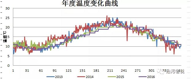 我國地理緯度跨度較大,相當(dāng)大的一部分區(qū)域都在北緯23.5°~66.5°的北溫帶區(qū)域內(nèi),這個(gè)區(qū)域最大的特點(diǎn)就是太陽直射點(diǎn)在南北回歸線之間做回歸運(yùn)動(dòng),受到太陽輻射的影響四季的氣溫變化分明,因此在我國大部分地區(qū),一年的春夏秋冬的周期性交替是每年必然產(chǎn)生的結(jié)果。在這些區(qū)域內(nèi)的污水廠的水質(zhì)如果要穩(wěn)定達(dá)標(biāo)的運(yùn)行,必須針對(duì)四季變化進(jìn)行工藝管理。