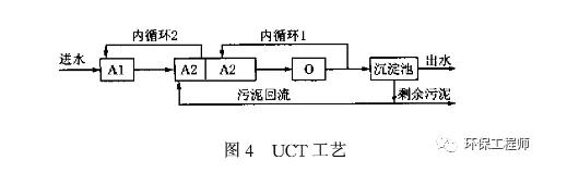 uct 工藝另辟蹊徑, 把常規(guī) a2/ o 工藝的缺氧區(qū)分為前后兩個部分( 如圖 4) 。內(nèi)循環(huán) 1 將硝化液從好氧區(qū)( o) 回流至缺氧區(qū)( a2) , 內(nèi)循環(huán)2將a2區(qū)前部的混合液循環(huán)至a1區(qū), 回流污泥不是直接進入a1區(qū), 而是先進入a2區(qū)前部。這種作法實際上是劃出一個小的缺氧區(qū)專門消耗回流污泥中的硝酸鹽, 故避免了回流污泥中的硝酸鹽對厭氧區(qū)的沖擊,改善了聚磷菌的釋磷環(huán)境。但是, 進入a2區(qū)前部的回流污泥實際上只有一小部分由內(nèi)循環(huán)2運至a1區(qū), 其余大部分未經(jīng)釋磷直接進入后續(xù)工藝。也就是說, 在所排除的剩余污泥中只有一小部分經(jīng)歷了完整的釋磷、吸磷全過程, 其實際除磷效果可能因此而大受影響。常規(guī)a2/o工藝實際上也存在類似缺陷。