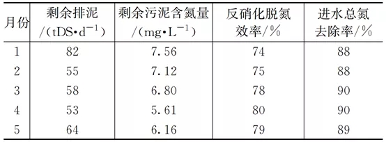 從檢測結(jié)果來看,剩余污泥組分的含氮量平均值約為4%。通過核算每日系統(tǒng)中排放的剩余污泥干固量,基本能夠確定從系統(tǒng)中排出的tn的含量。