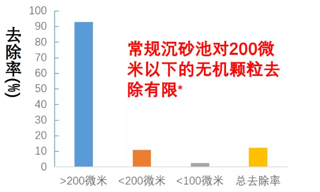 除了上述的問題以外,還有些地區(qū)的沉砂池根本攔截不住砂粒,但是生物池內(nèi)的污泥濃度中mlvss占比卻極低,這主要是因?yàn)楝F(xiàn)階段標(biāo)準(zhǔn)設(shè)計(jì)的沉砂池都是以去除0.2mm的砂粒為主要去除對象的,如果進(jìn)水的無機(jī)砂粒粒徑小于0.2mm,相對密度低于2.5的,就不能被沉砂池有效的去除,造成生化段活性污泥的無機(jī)成分增多。