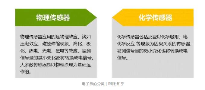 sniffdrone,顧名思義,就是一臺(tái)會(huì)辨識(shí)氣味的無人機(jī)。為了幫助讀者了解這個(gè)技術(shù)的原理,小編找到了知乎上的一篇文章《電子鼻的原理是什么啊,能識(shí)別氣味?》給大家參考。如下圖所示,所謂的電子鼻就是各種傳感器,其中又分為了物理傳感器和化學(xué)傳感器。