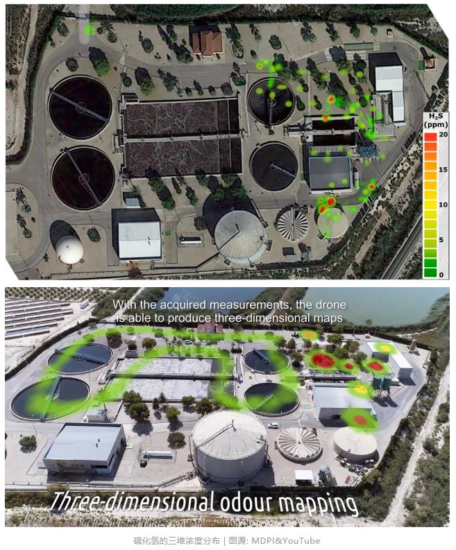 和上述兩種方法相比,使用無人機(jī)來監(jiān)測(cè)臭氣排放有許多優(yōu)點(diǎn),例如它們可以測(cè)量污水廠不同位置的關(guān)鍵嗅味化合物的濃度,包括一些過去操作人員難以到達(dá)的位置。這意味更高的空間分辨率、更低的風(fēng)險(xiǎn)和更低的成本。這些數(shù)據(jù)信息能為處理工藝提供建議反饋,優(yōu)化氣體擴(kuò)散模型,更好地預(yù)測(cè)對(duì)污水廠周圍的臭氣影響,幫助廠區(qū)更好地識(shí)別無組織排放。