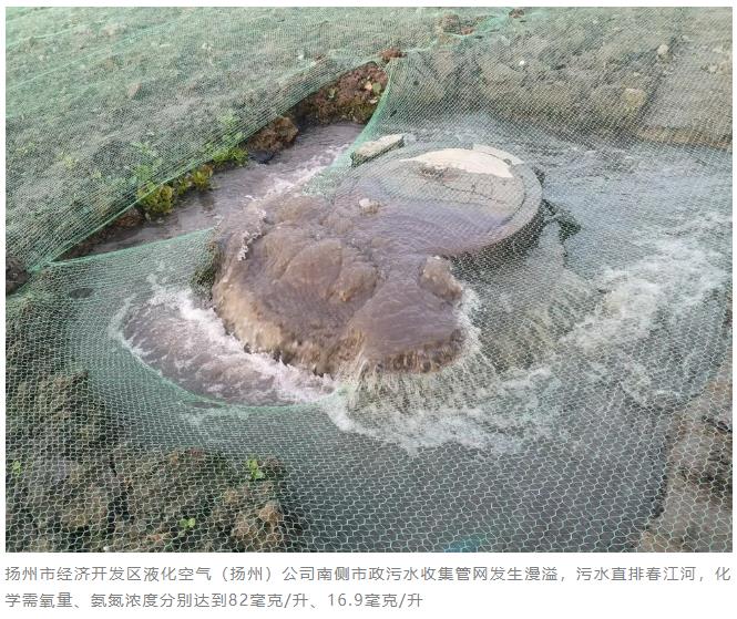 督察發(fā)現(xiàn),部分區(qū)域管網(wǎng)破損、污水溢流問題多發(fā)。12月10日,督察組在揚(yáng)州市經(jīng)濟(jì)開發(fā)區(qū)春江路液化空氣(揚(yáng)州)公司南側(cè)發(fā)現(xiàn)兩處污水管網(wǎng)漫溢口,大量污水排入春江河,在河面形成明顯的污染帶。當(dāng)?shù)貙iT開挖溝渠用于污水導(dǎo)流,表明該問題已存在較長(zhǎng)時(shí)間。