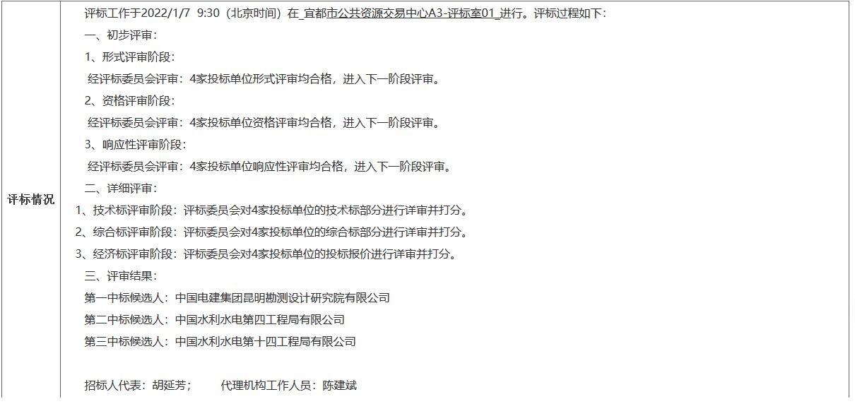 長江宜都段生態(tài)保護(hù)與綠色發(fā)展eod項(xiàng)目(一期)于2021年12月7日在宜都市公共資源交易信息網(wǎng)發(fā)布招標(biāo)公告,2022年1月7日9時(shí)0分在宜都市公共資源交易中心開標(biāo)、評標(biāo) ,根據(jù)評標(biāo)委員會提交的評標(biāo)報(bào)告,現(xiàn)將中標(biāo)候選人公示如下: