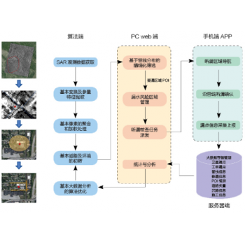 利用雷達(dá)的穿透性特點(diǎn),采用長(zhǎng)波段雷達(dá)衛(wèi)星掃描獲取整個(gè)城市的雷達(dá)遙感數(shù)據(jù),通過濾波、特征變換等算法模型分析管線泄露導(dǎo)致的土壤含水量差異,檢測(cè)識(shí)別出小范圍的疑似漏水區(qū)域,為地面檢漏核查提供準(zhǔn)確依據(jù)。